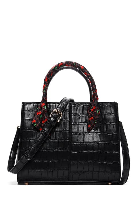 کیف دستی زنانه بند بلند مشکی طرح کروکودیل با جزئیات اکسسوری دری مد