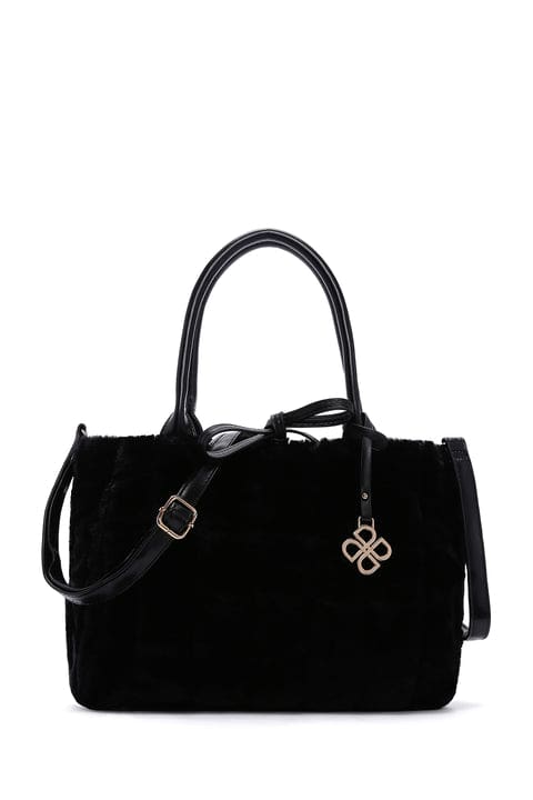 Kadın Siyah Uzun Askılı Peluş Kol Çantası