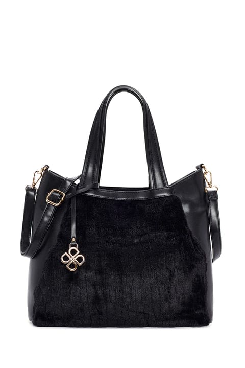 Kadın Siyah Uzun Askılı Peluş Kol Çantası