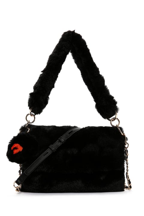 Kadın Siyah Uzun Askılı Peluş Omuz Çantası