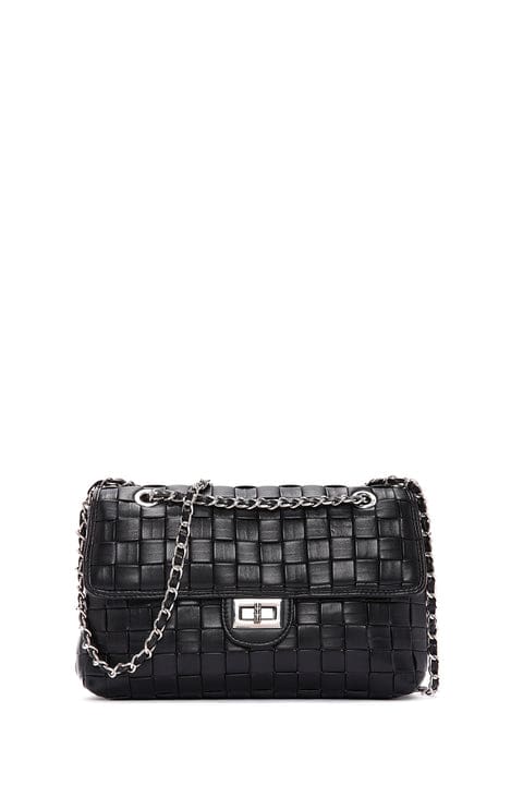 Kadın Siyah Örgü Desenli Uzun Askılı Omuz Çantası