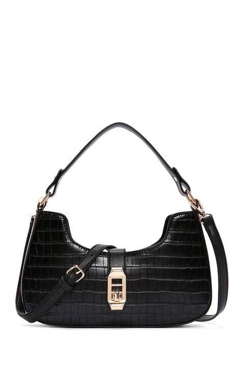 Kadın Siyah Uzun Askılı Kroko Desenli Kol Çantası