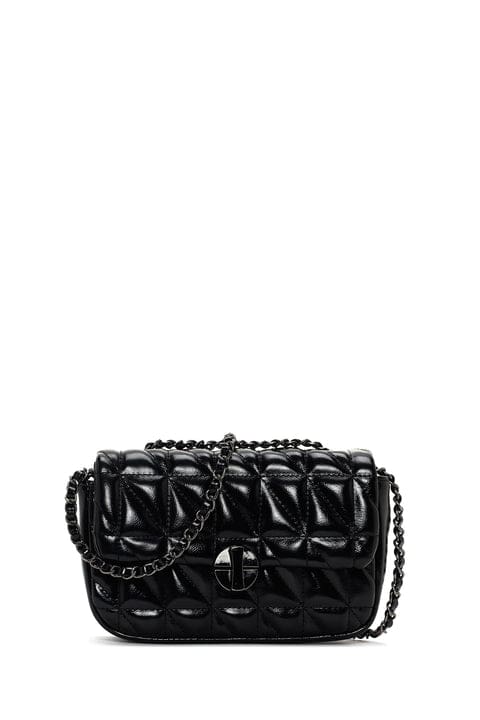 Kadın Siyah Uzun Askılı Kapitone Metalik Çapraz Çanta