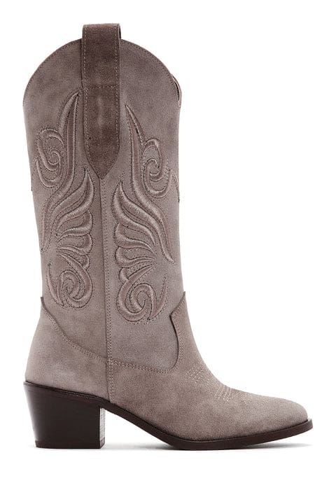 Kadın Vizon Süet Deri Topuklu Kovboy Çizme