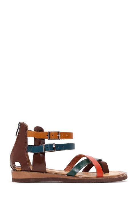 Kadın Çok Renkli Parmak Arası Deri Bodrum Sandaleti