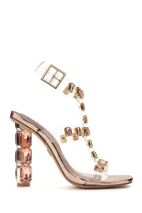 Kadın Pembe Bilekten Bantlı Taşlı İnce Topuklu Sandalet