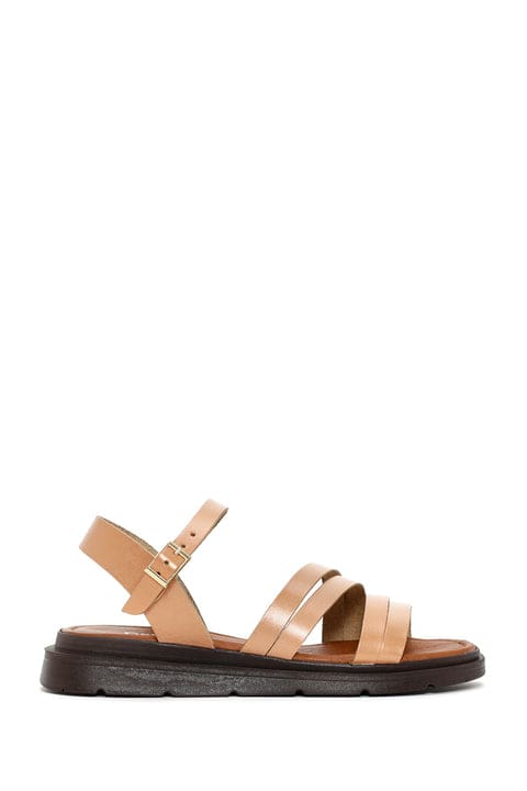 Kadın Pudra Bilekten Bantlı Deri Sandalet