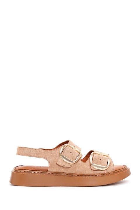 Kadın Pudra Deri Tokalı Comfort Sandalet