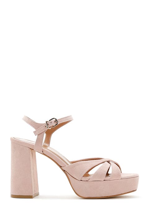 Kadın Pudra Süet Deri Kalın Topuklu Platform Sandalet