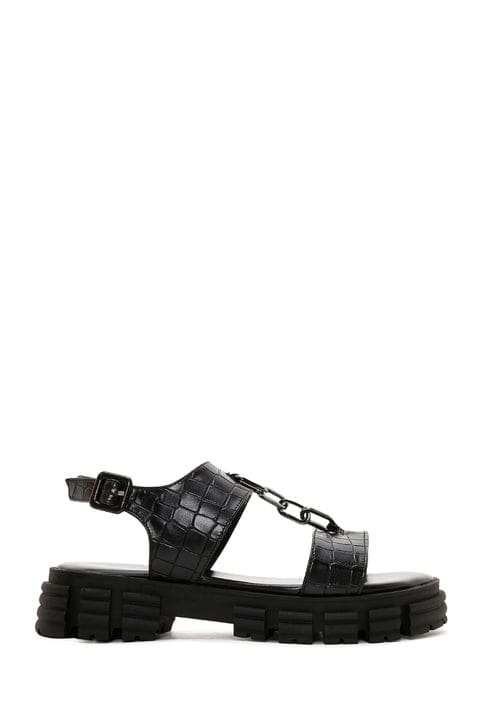 Kadın Siyah Kroko Kalın Tabanlı Sandalet