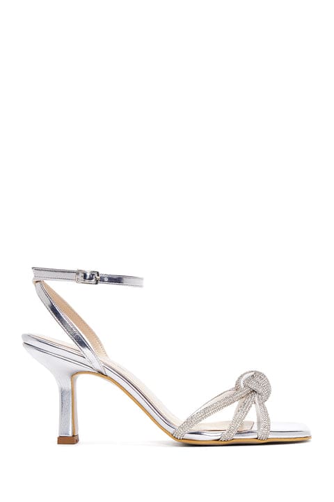 Kadın Gümüş Bilekten Tokalı Taşlı İnce Topuklu Sandalet