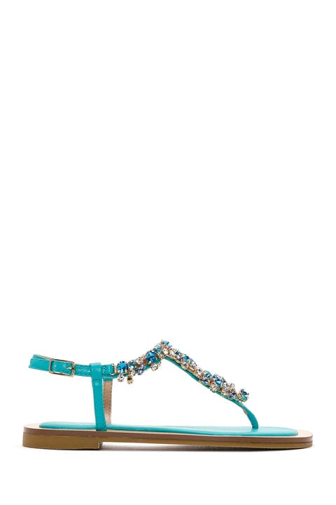 Kadın Turkuaz Taşlı Parmak Arası Sandalet