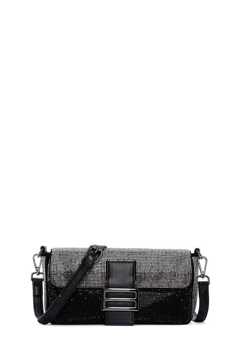 کیف دوشی نگین دار بند بلند مشکی زنانه دری مد