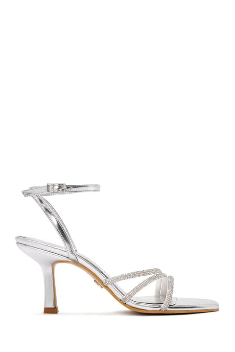 Kadın Gümüş Bilekten Bantlı Taşlı İnce Topuklu Sandalet