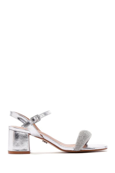 Kadın Gümüş Bilekten Bantlı Taşlı Sandalet