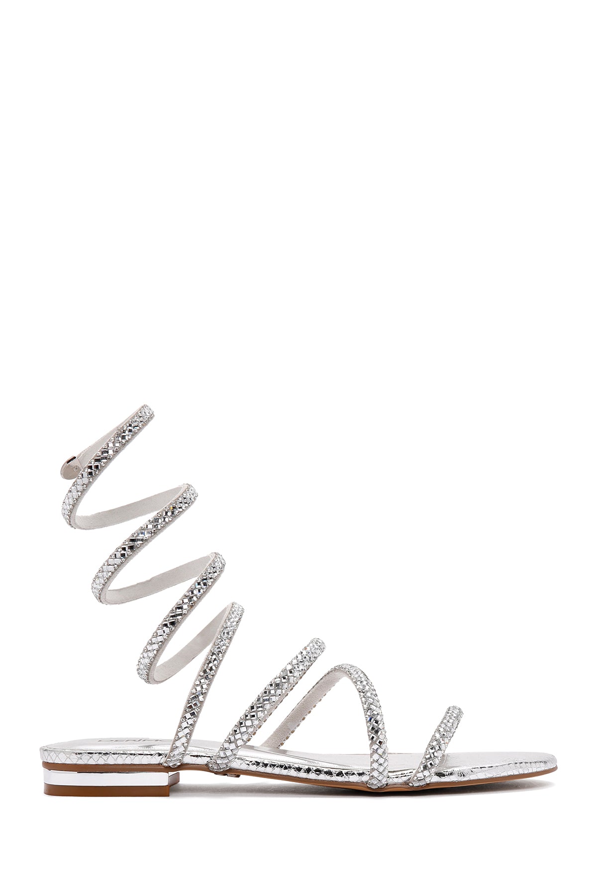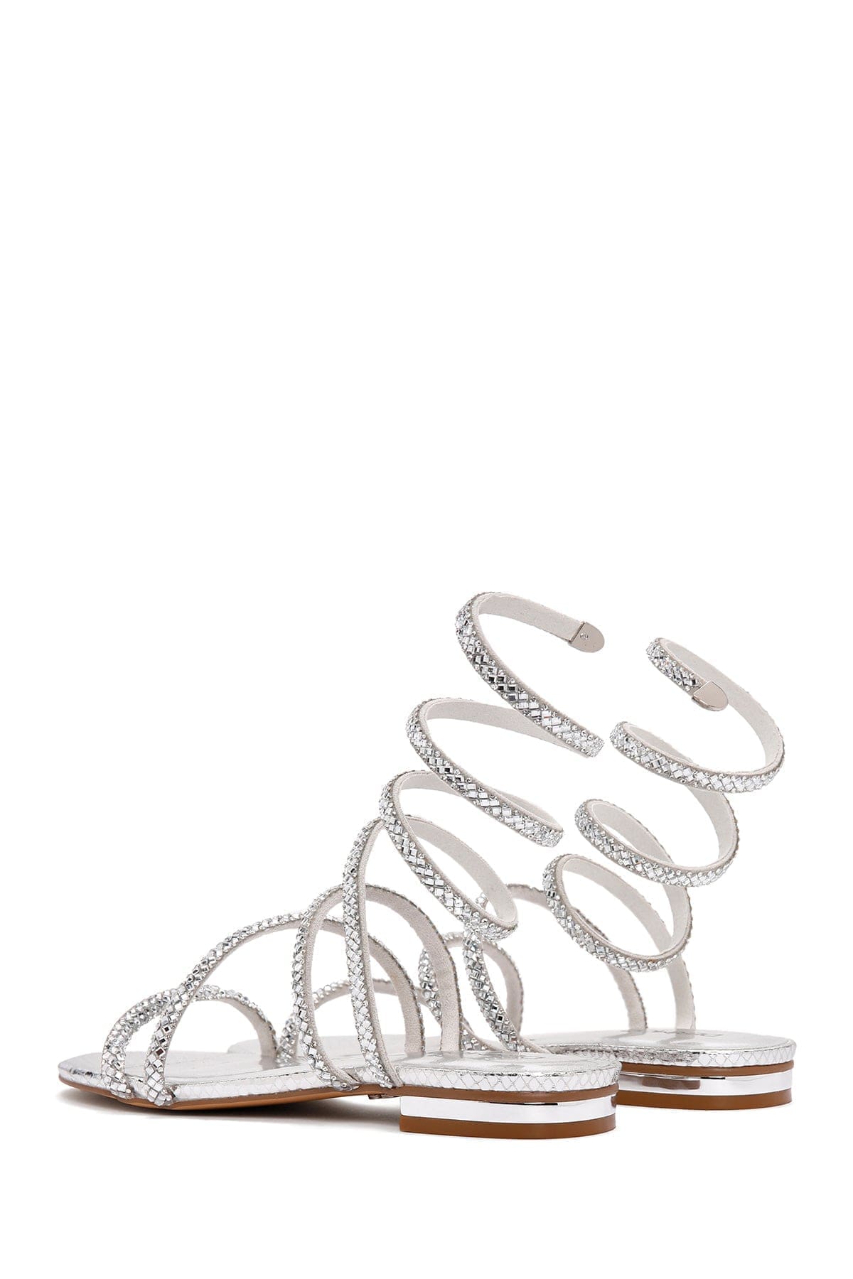Kadın Gümüş Bilekten Bantlı Taşlı Sandalet