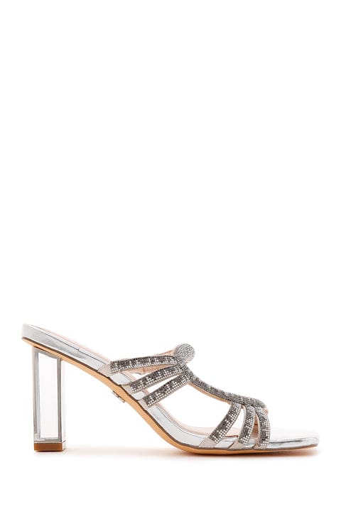 دمپایی پاشنه دار سنگ نقره زنانه دری مد