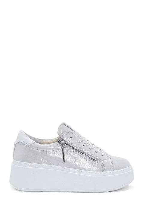 Kadın Gümüş Kalın Tabanlı Yandan Fermuarlı Deri Sneaker