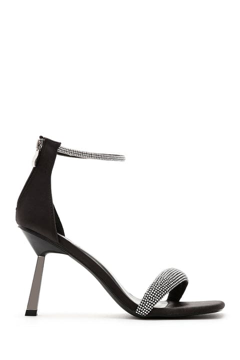 Kadın Siyah Taşlı Tek Bantlı İnce Topuklu Sandalet