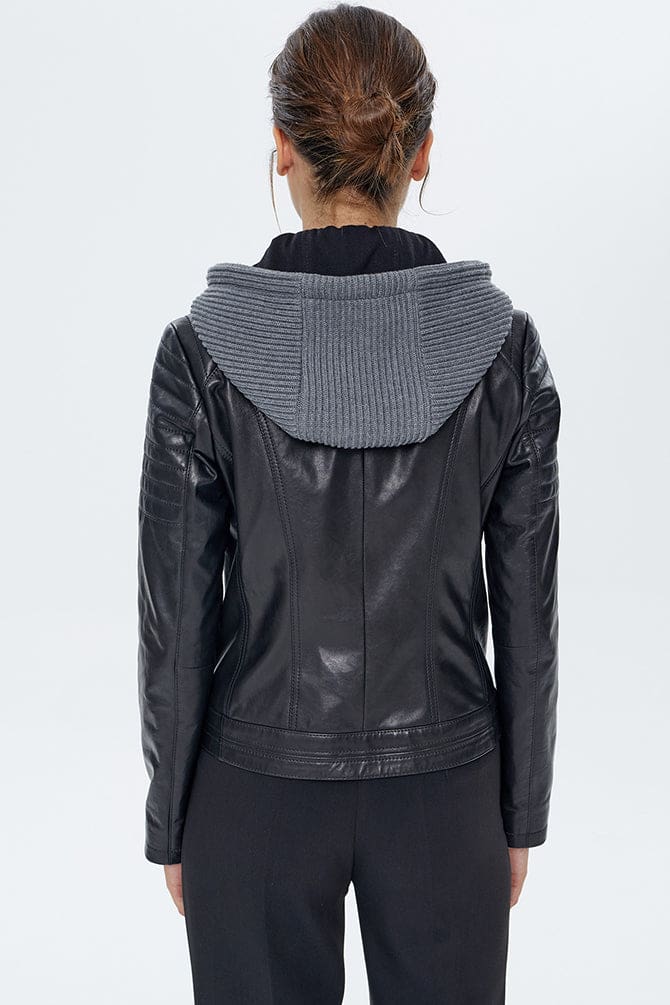کت چرم اسپرت زنانه کلاهدار مشکی زوم دری مد