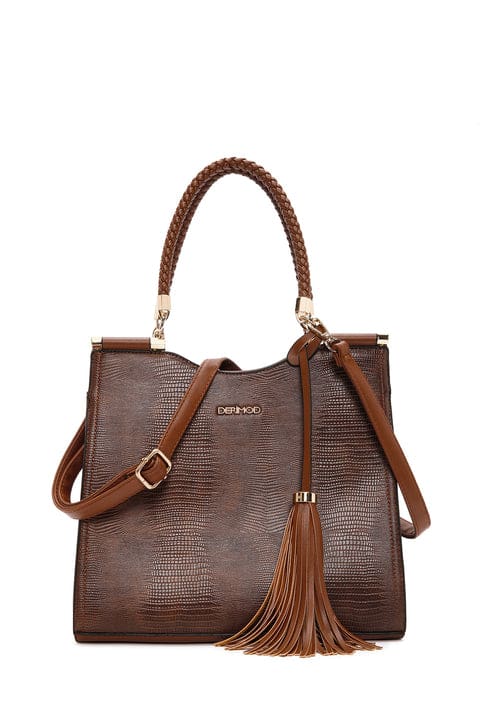 زیبا استایلر / فروشگاه / زنانه / کیف و اکسسوری زنانه / کیف شانه ای زنانه / کیف دوشی بند بلند زنانه چاپ شده برنزه دری مد
