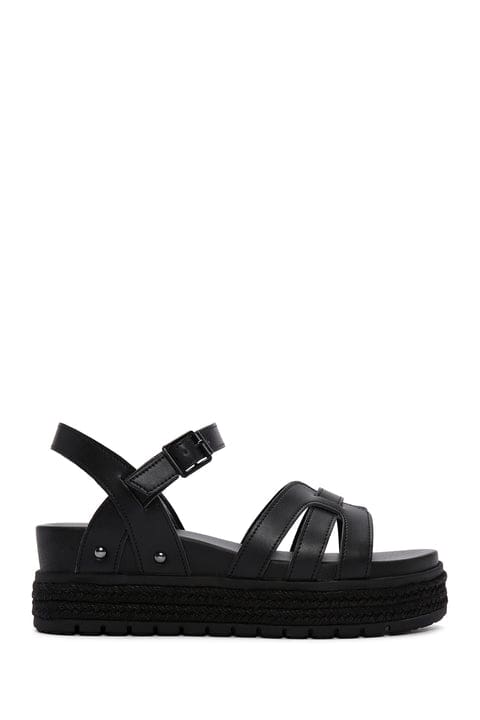 Kadın Siyah Bilekten Bantlı Kalın Tabanlı Sandalet