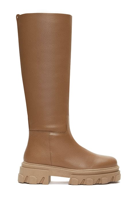 Kadın Kahverengi Deri Kalın Tabanlı Çizme