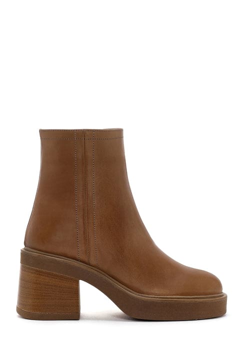 Kadın Taba Fermuarlı Kalın Topuklu Deri Bot