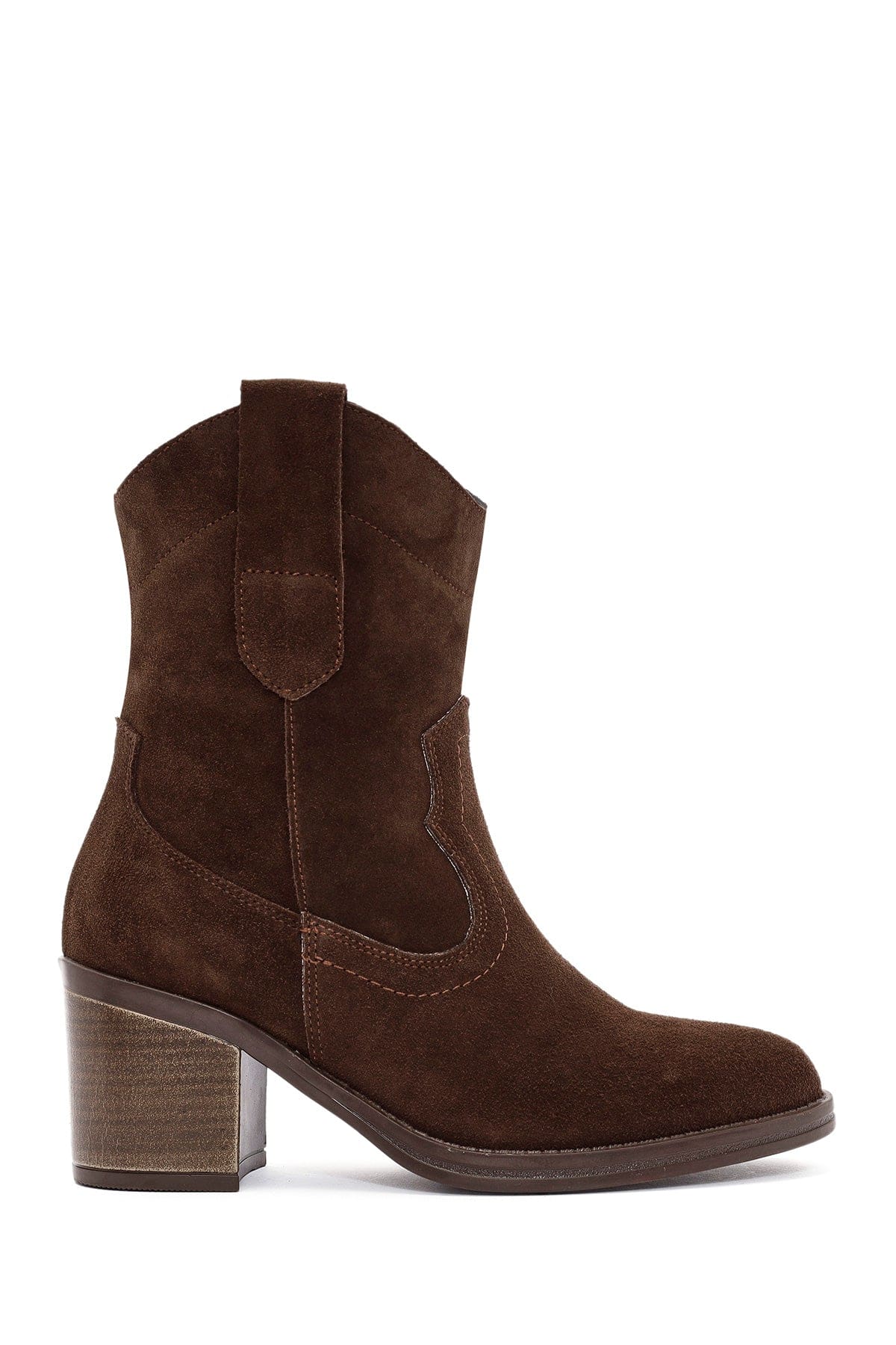 Kadın Kahverengi Kalın Topuklu Süet Deri Kovboy Bot