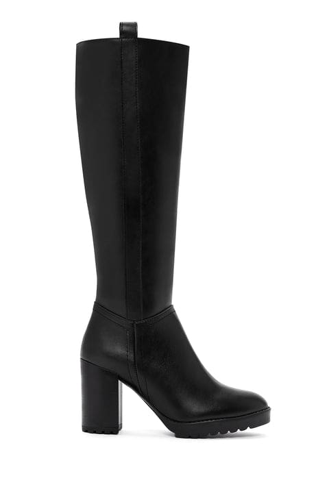 Kadın Siyah Kalın Topuklu Fermuarlı Çizme