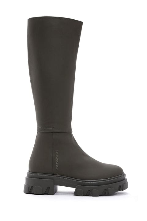 Kadın Haki Fermuarlı Kalın Tabanlı Çizme