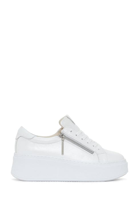Kadın Beyaz Kalın Tabanlı Yandan Fermuarlı Deri Sneaker