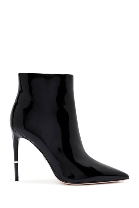 Kadın Siyah Fermuarlı İnce Topuklu Rugan Deri Bot
