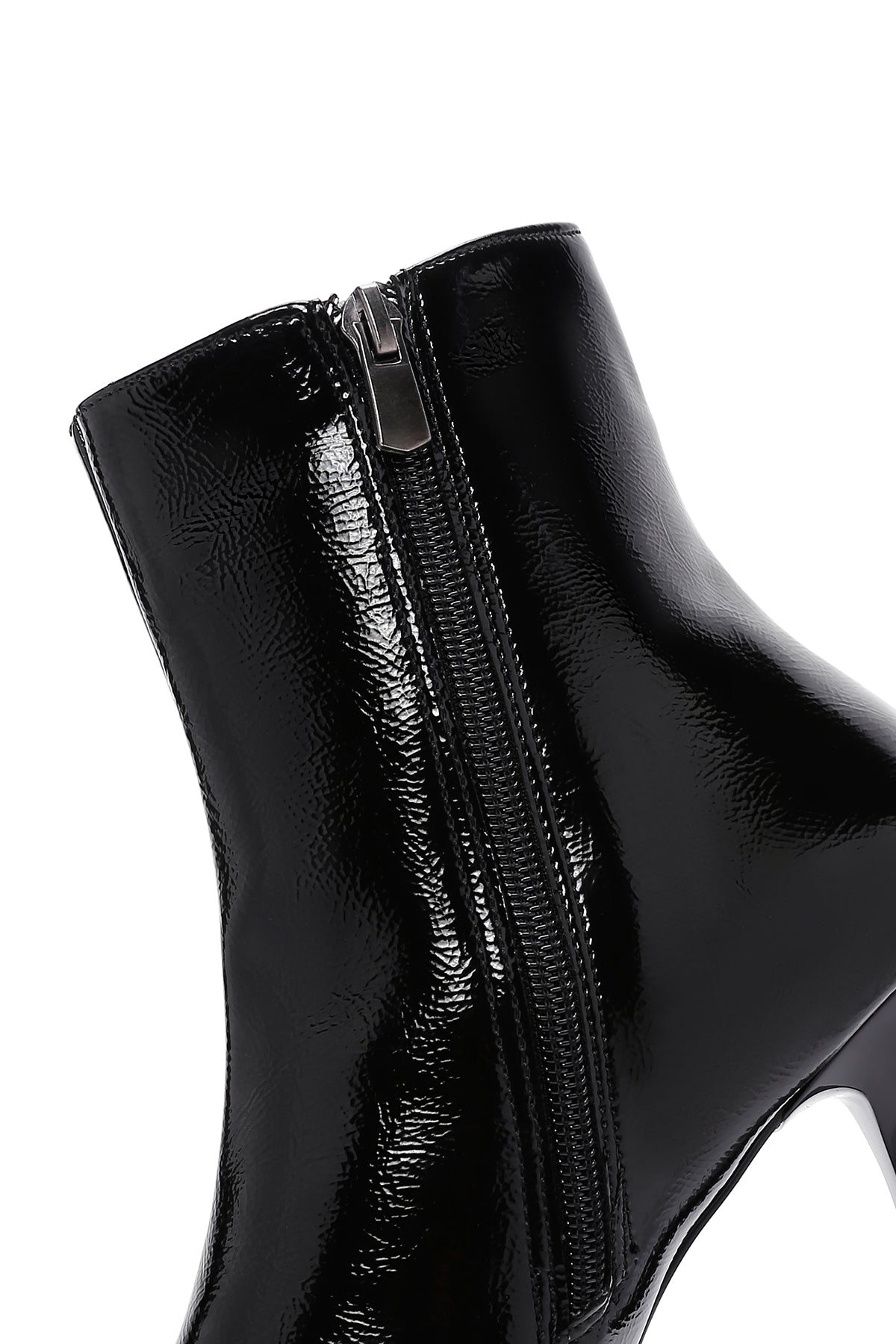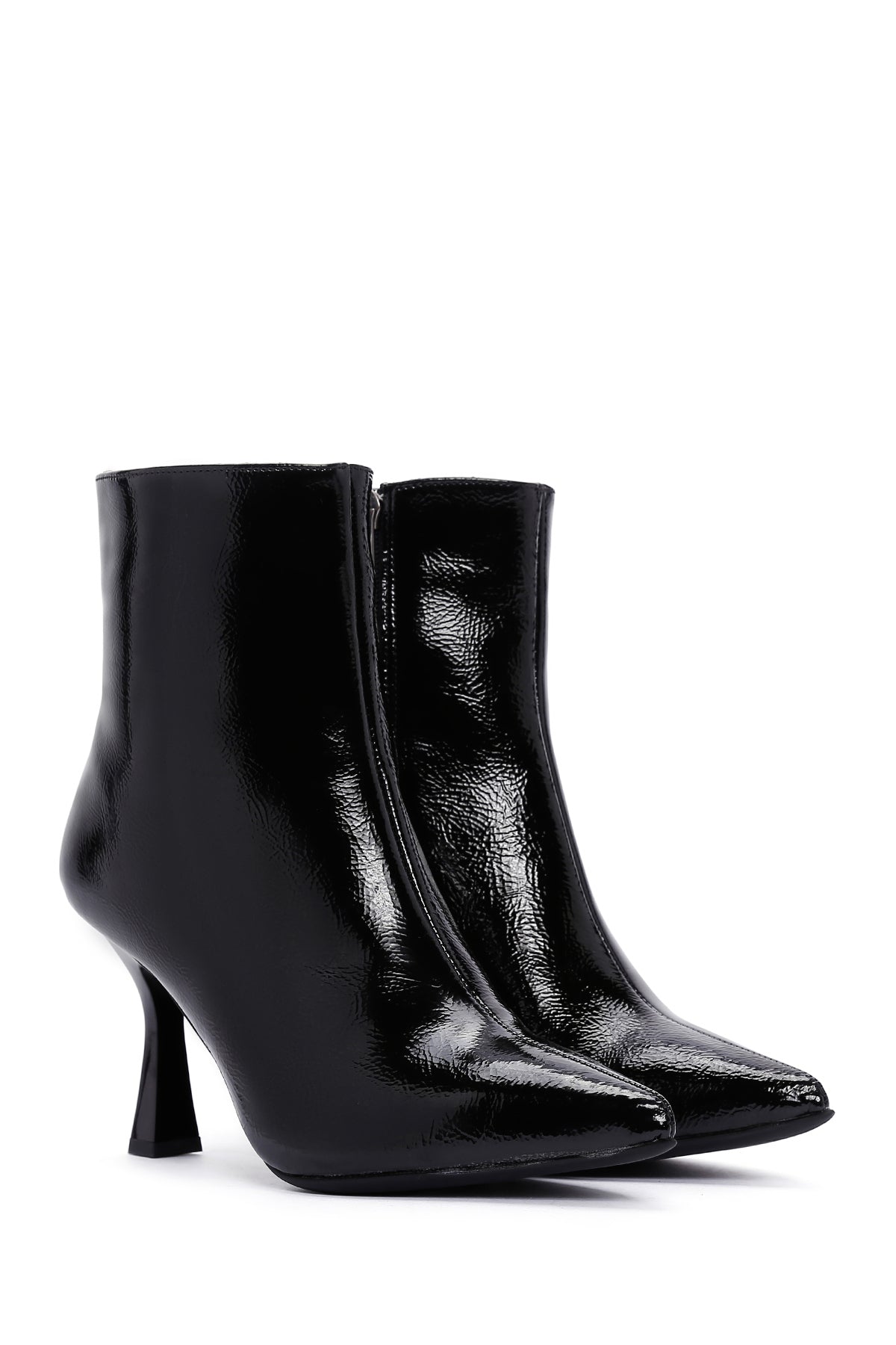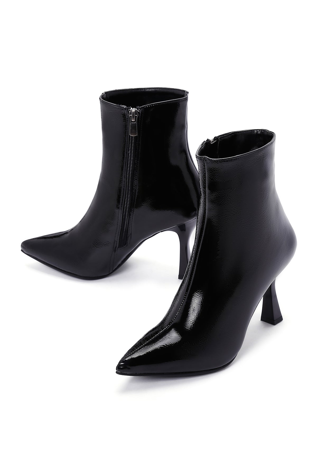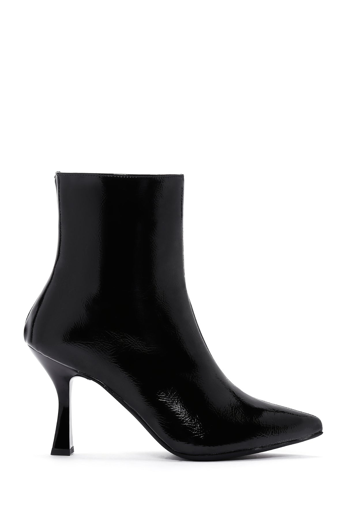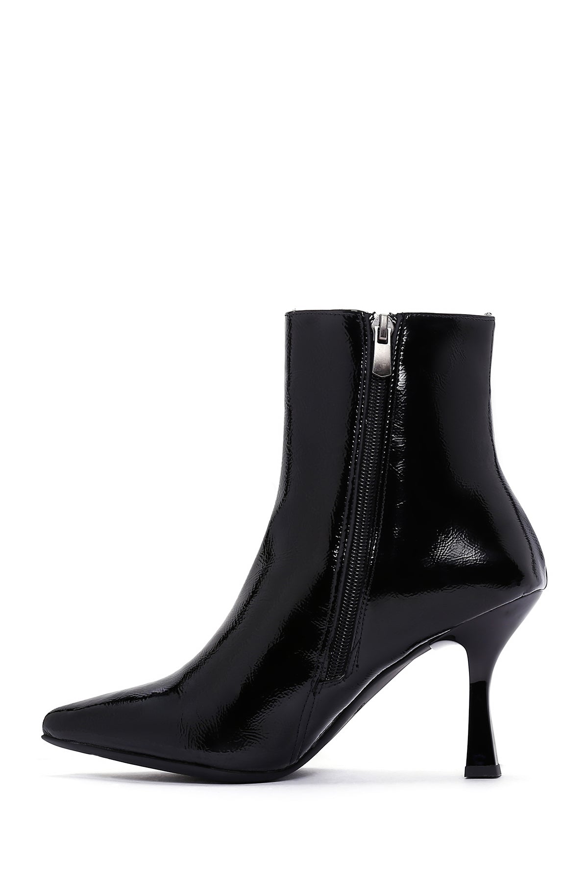 Kadın Siyah Fermuarlı İnce Topuklu Rugan Bot