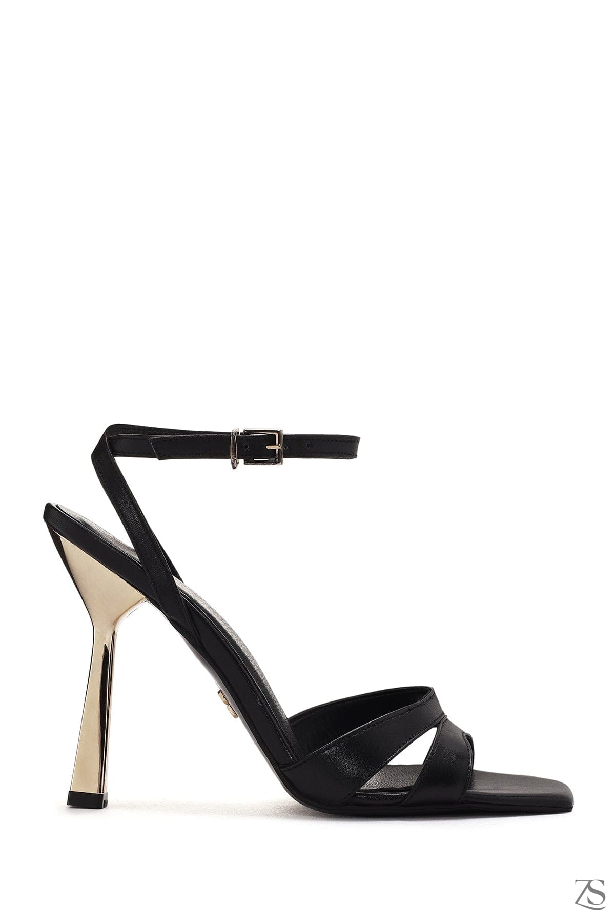 صندل چرمی پاشنه نازک بند دار مشکی زنانه دری مد