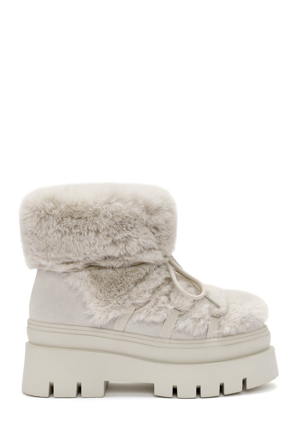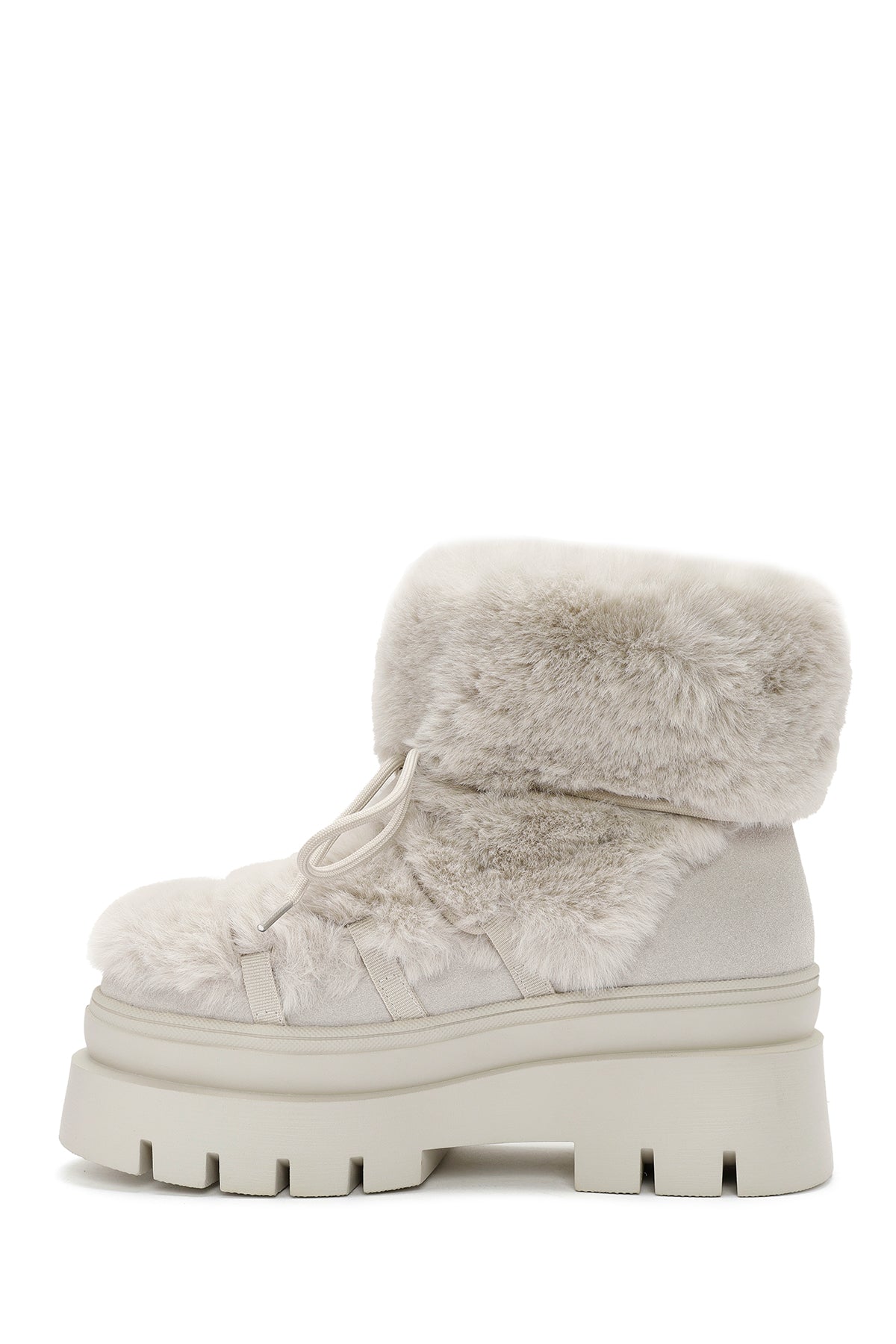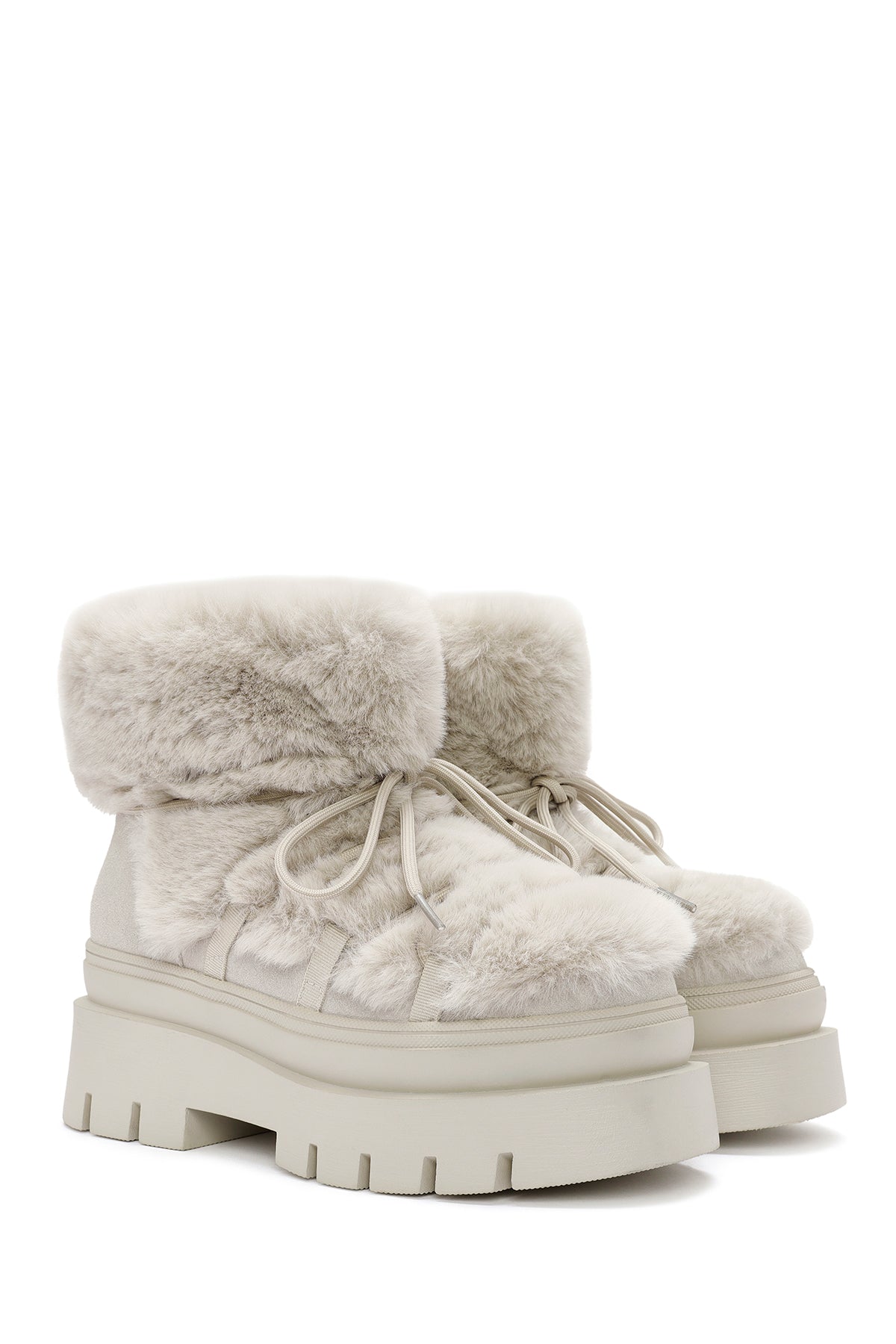 Kadın Krem Kalın Tabanlı Peluş Detaylı Bot