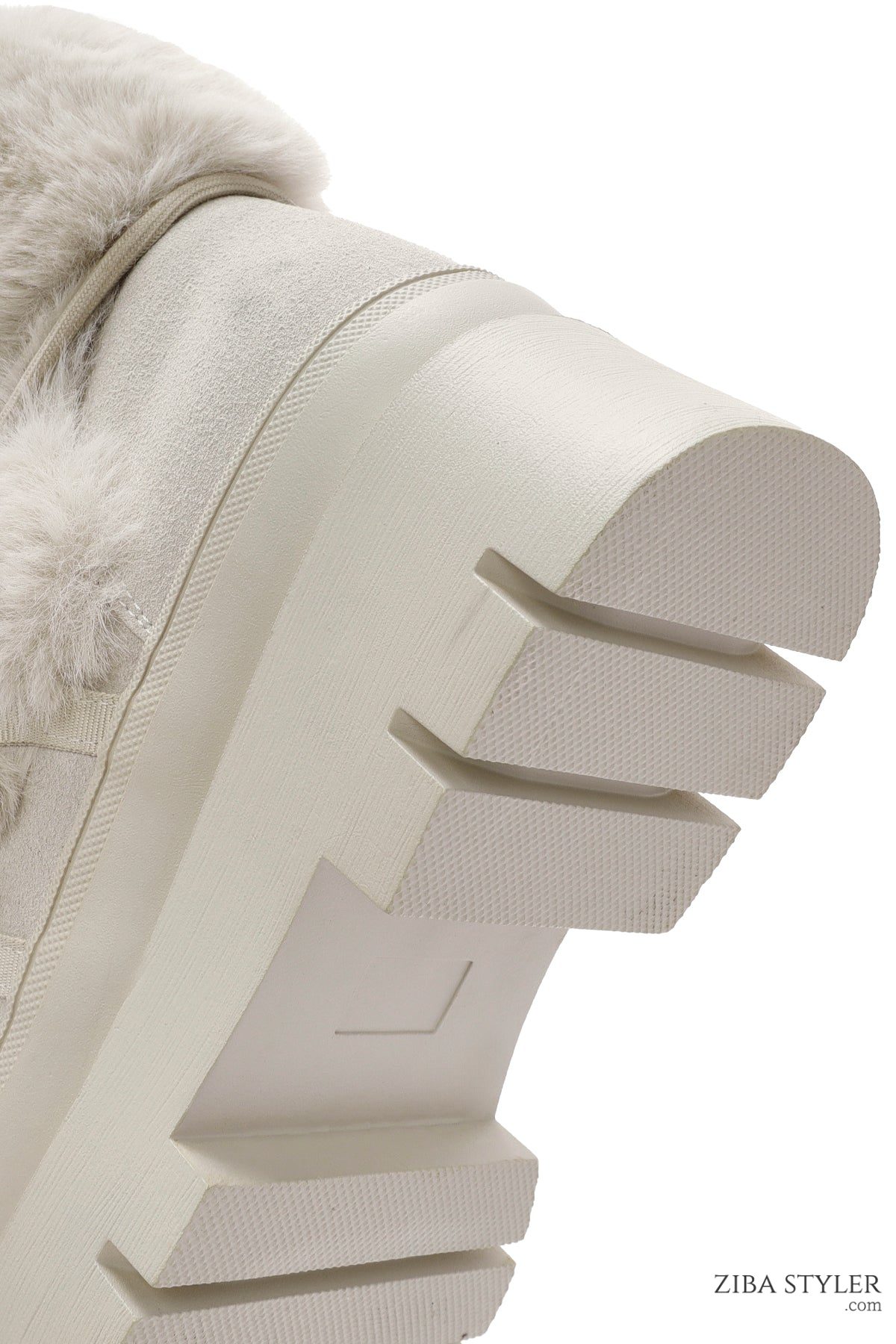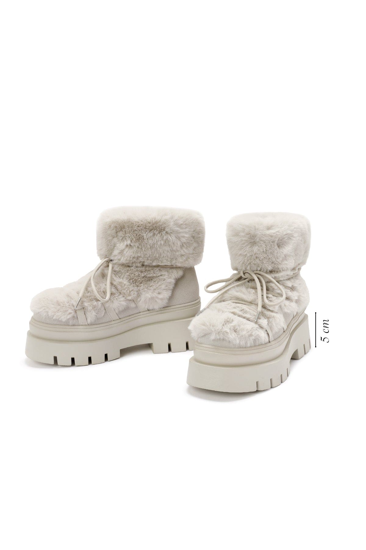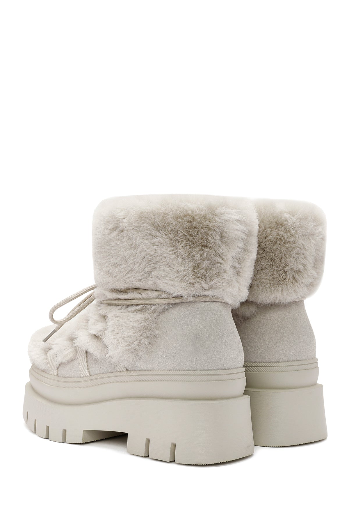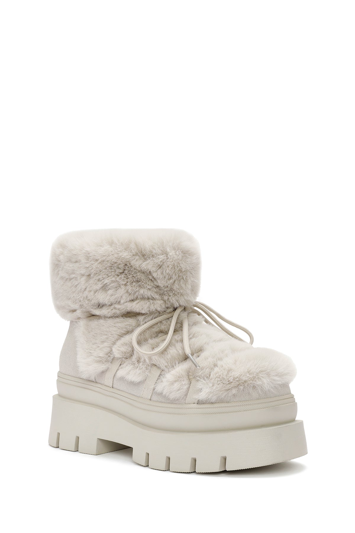 Kadın Krem Kalın Tabanlı Peluş Detaylı Bot