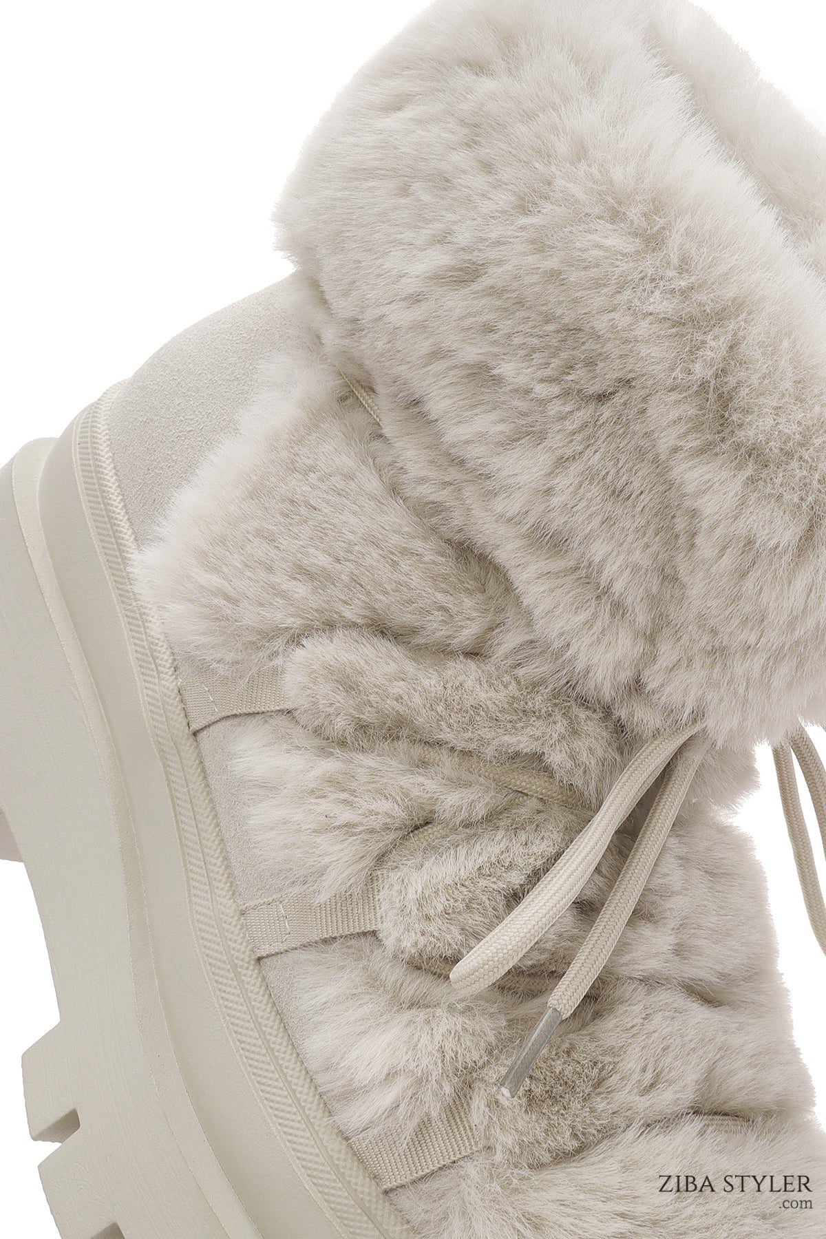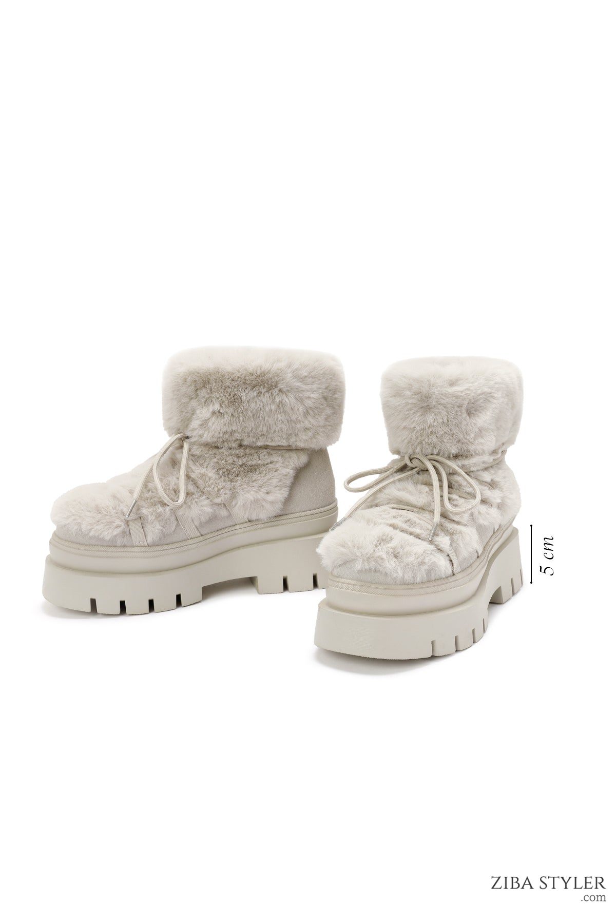 بوت مخملدار با زیره ضخیم کرم زنانه دری مد