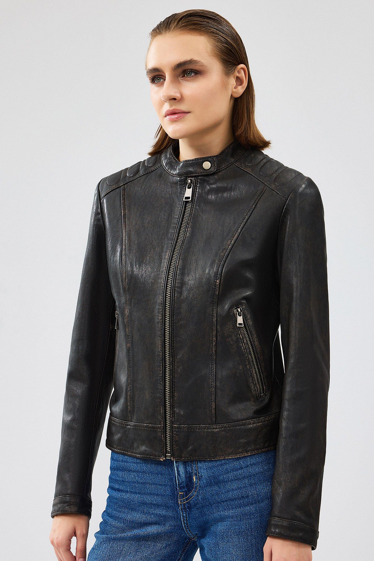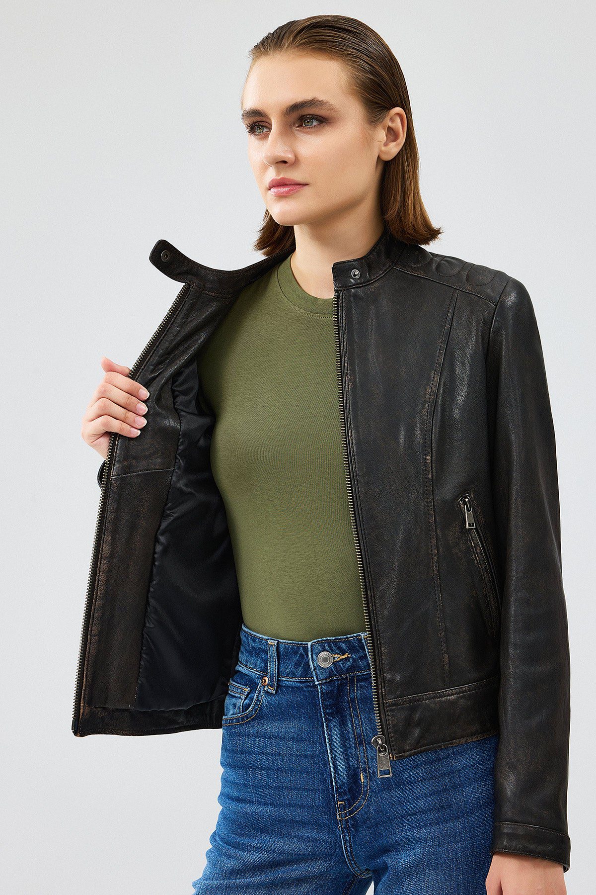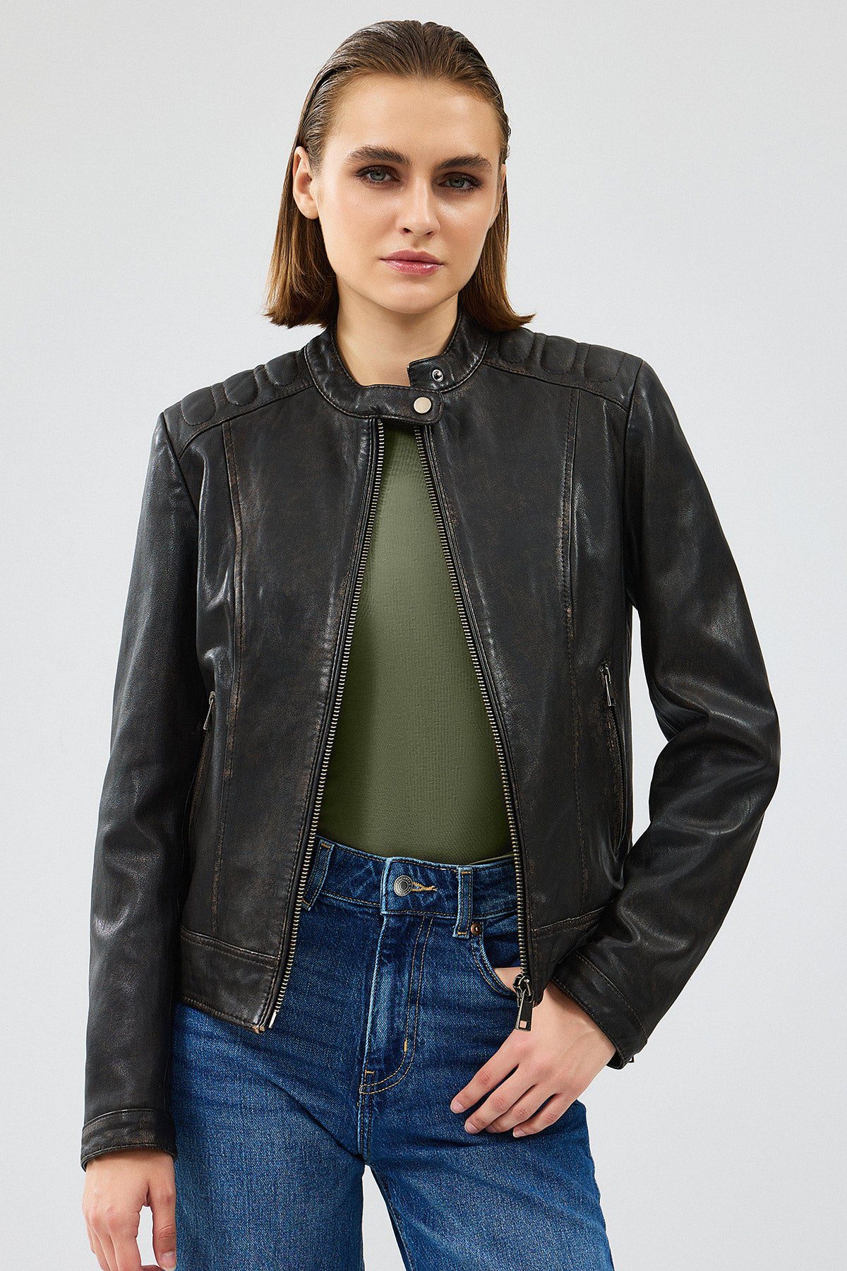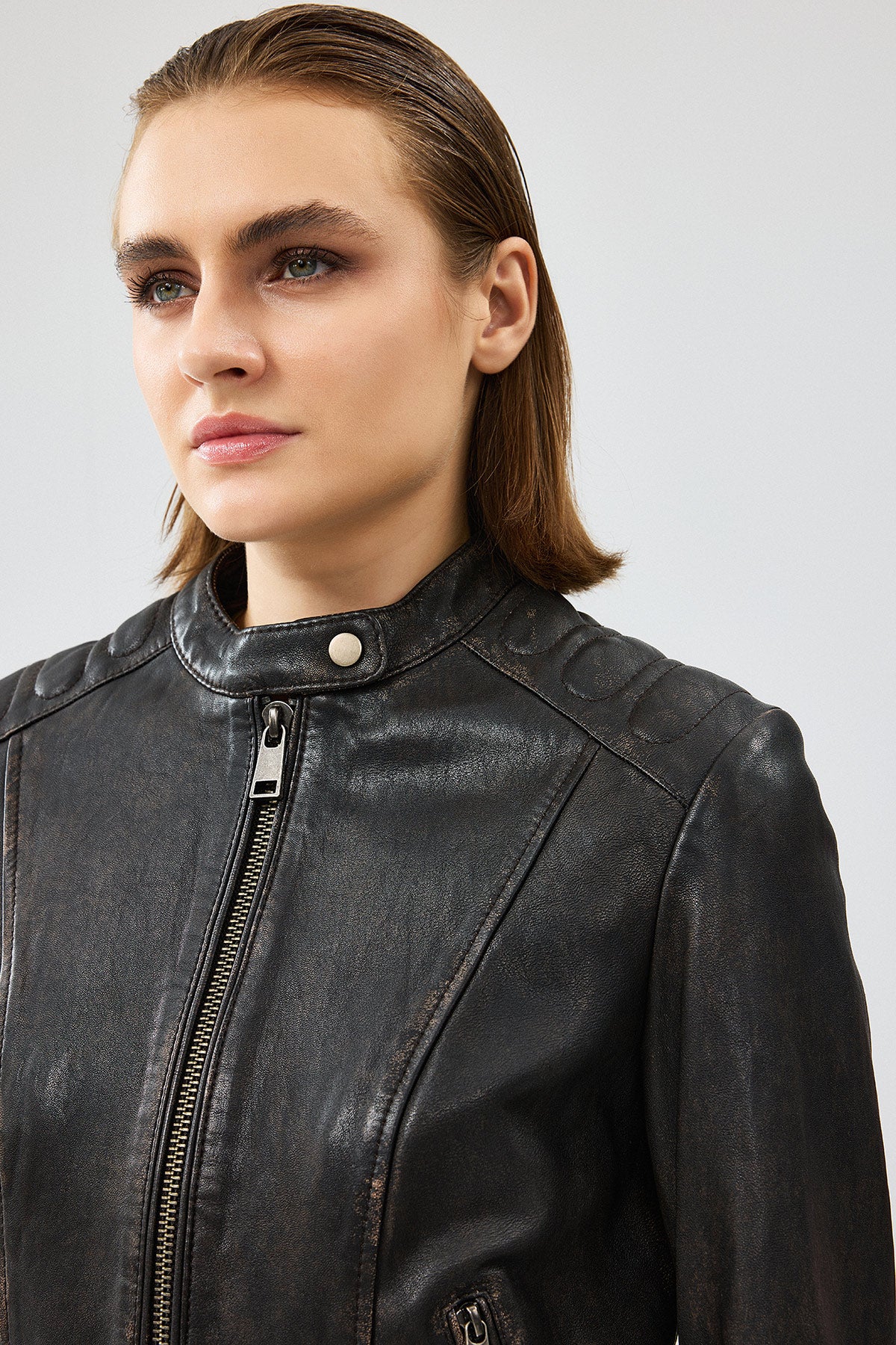 کت چرمی وینتیج قهوه ای زنانه Weekend دری مد