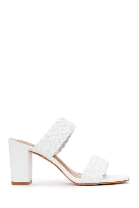 Kadın Beyaz Örgü Kalın Topuklu Terlik