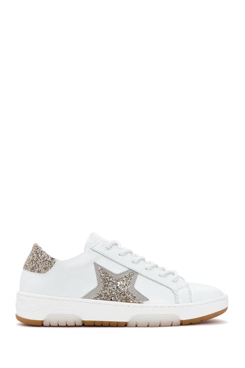 Kadın Beyaz Bağcıklı Deri Sneaker