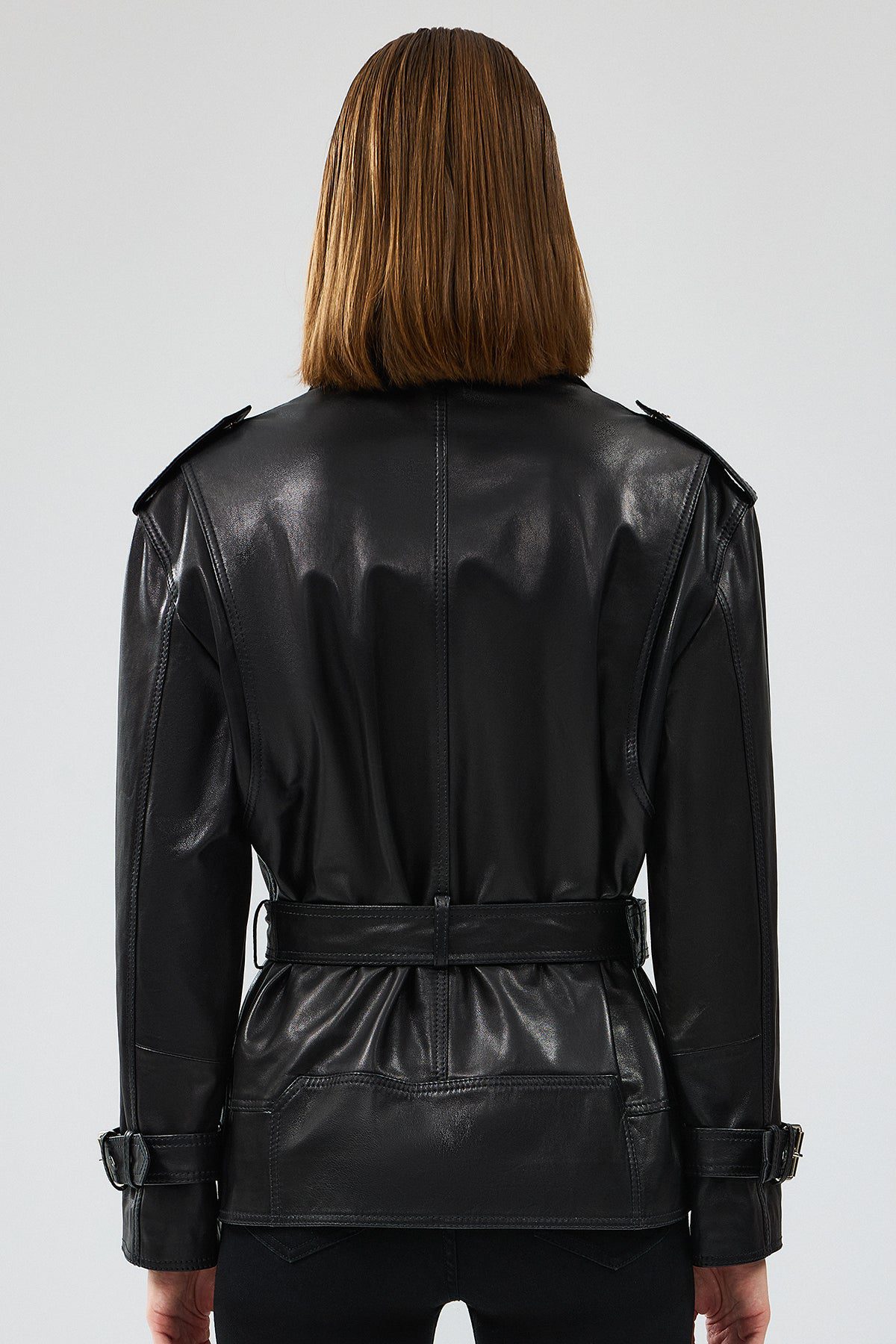 کاپشن چرمی مشکی موتورسواری زنانه با کمربند Zendaya دری مد
