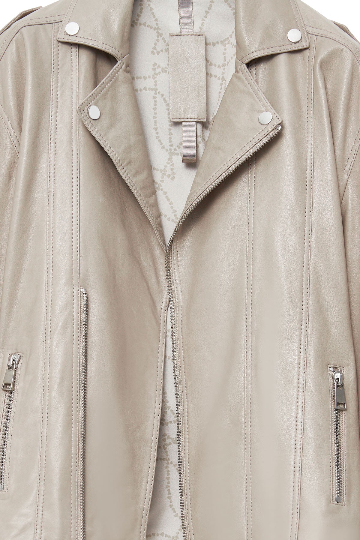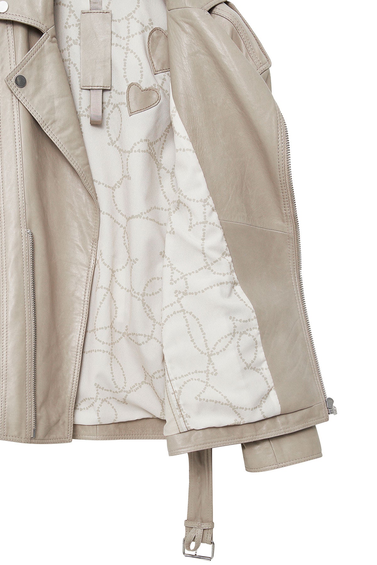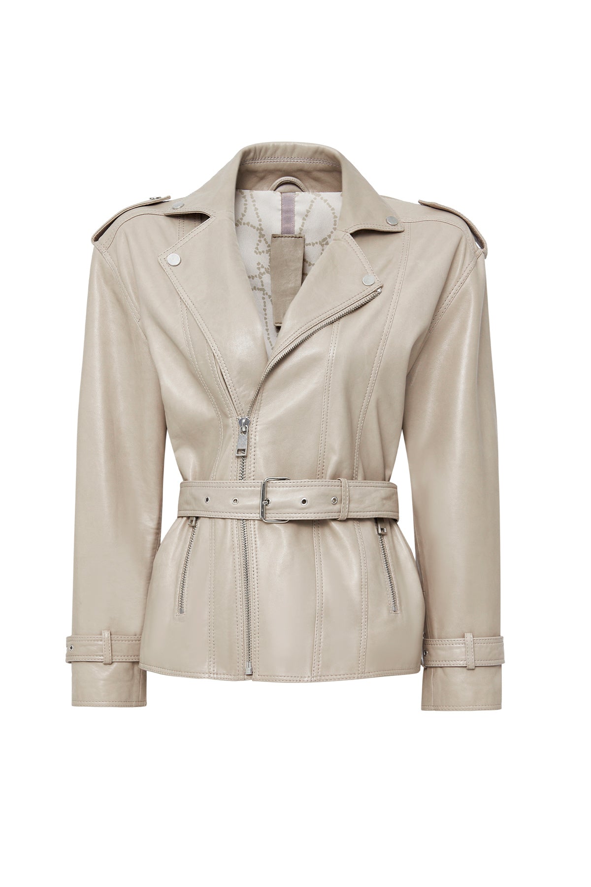 Zendaya Kadın Bej Kemer Detaylı Biker Deri Ceket