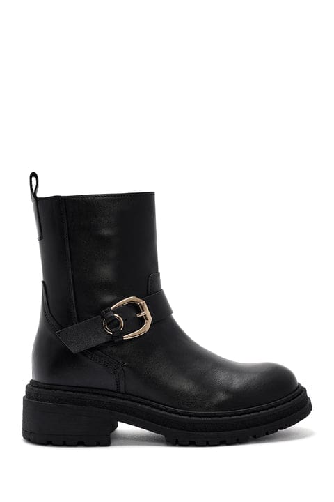 Kadın Siyah Toka Detaylı Fermuarlı Deri Bot